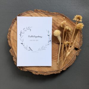 Eine Trauerkarte als Klappkarte im A6-Format. Schlicht in schwarz/weiß gehalten und lediglich mit einem dezenten goldenen Farbtupfer versehen.